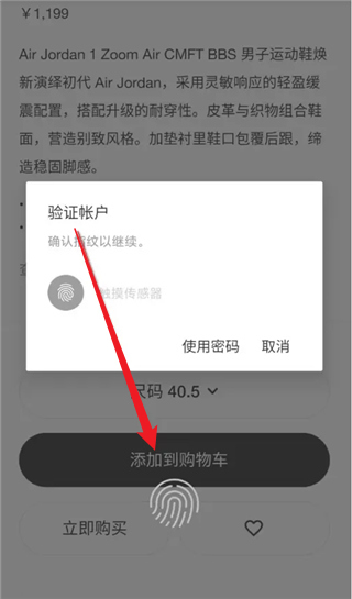 5、在商品详情页点击添加到购物车,需要通过指纹或密码验证账户信息后,才能完成添加操作,确保购物安全。