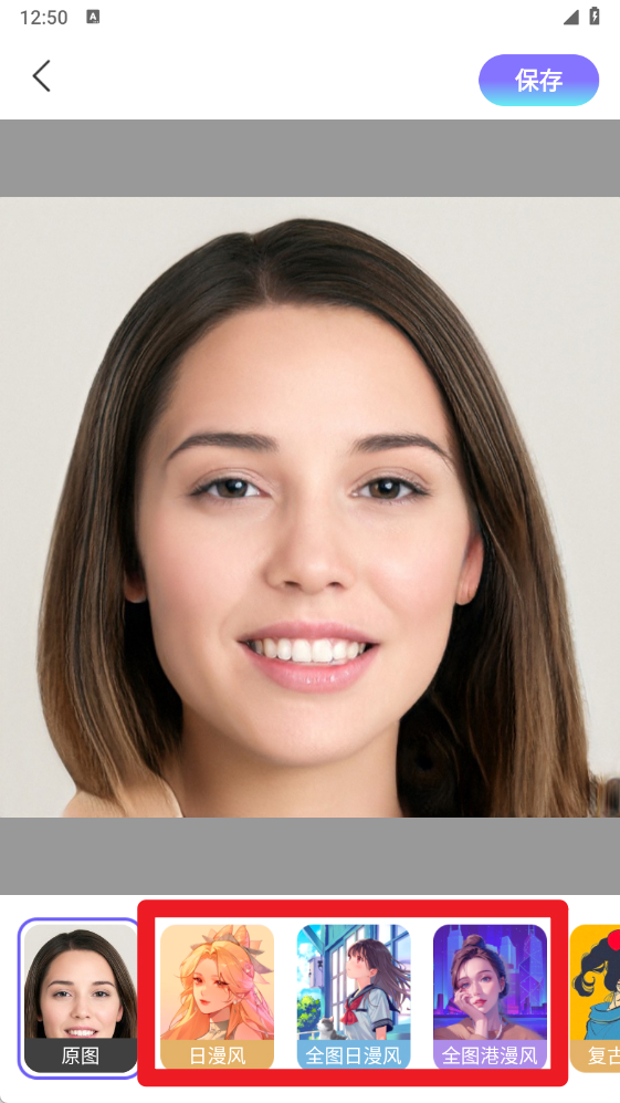 2、在漫画滤镜界面,用户能够上传自拍照,挑选各类动漫风格滤镜,一键制作出具有个性的漫画头像,感受充满趣味的照片变换效果。