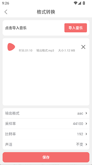 3、设置输出格式、采样率、比特率后,点击保存即可