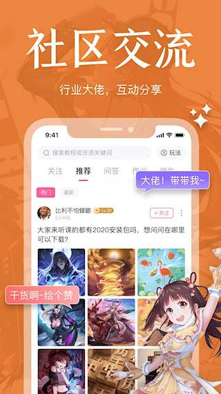 5、平台配备技术问答、作品点评等互动功能,营造互助分享的社区氛围,把专业学习和社交交流巧妙融合,助力大家共同进步。