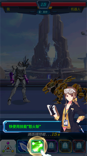6、战斗时挑选适配的技能施展,就能启动机甲战斗模式,与敌人交锋以达成战斗任务。