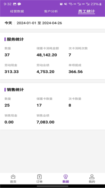 对门店所有服务订单信息进行统计,用户可查看全部订单明细。
