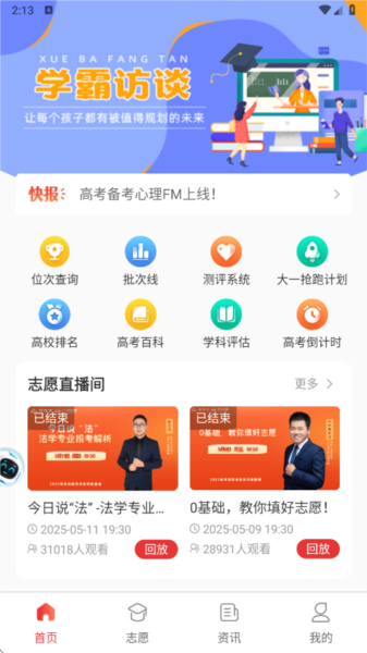 志愿讲堂:我们会邀请顶尖高校的学霸以及志愿填报领域的专家,助力学生开启大学知识的启蒙之旅,同时让他们熟练掌握志愿填报的各类技巧与实用策略。这里的讲解主题十分丰富且形式多样,并且后续还会不断进行内容更新。