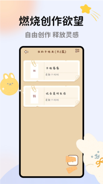 支持用户挑选所需素材制作手帐,轻松打造出花样繁多的笔记手帐。