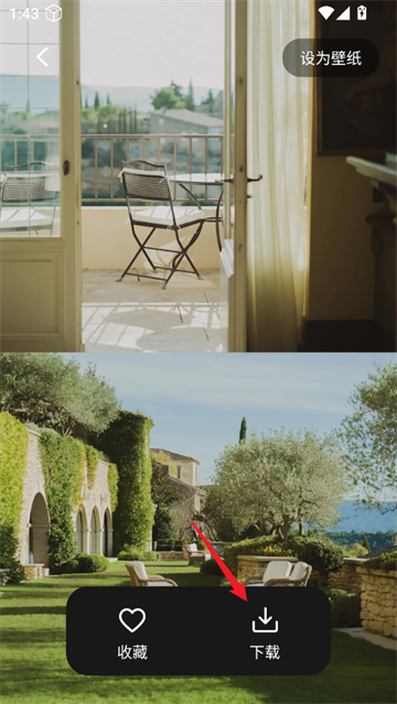 3、点击目标壁纸进入详情页后,找到右下角的对应按钮并点击,壁纸就会保存到手机本地。