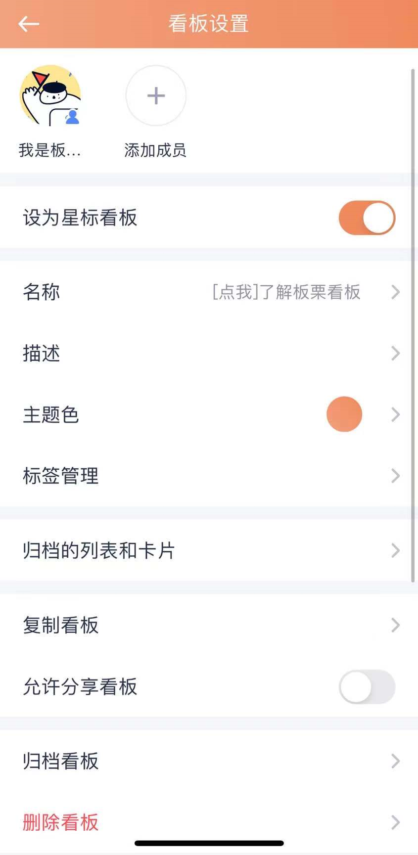 可更改看板名称、主题色、描述等信息。