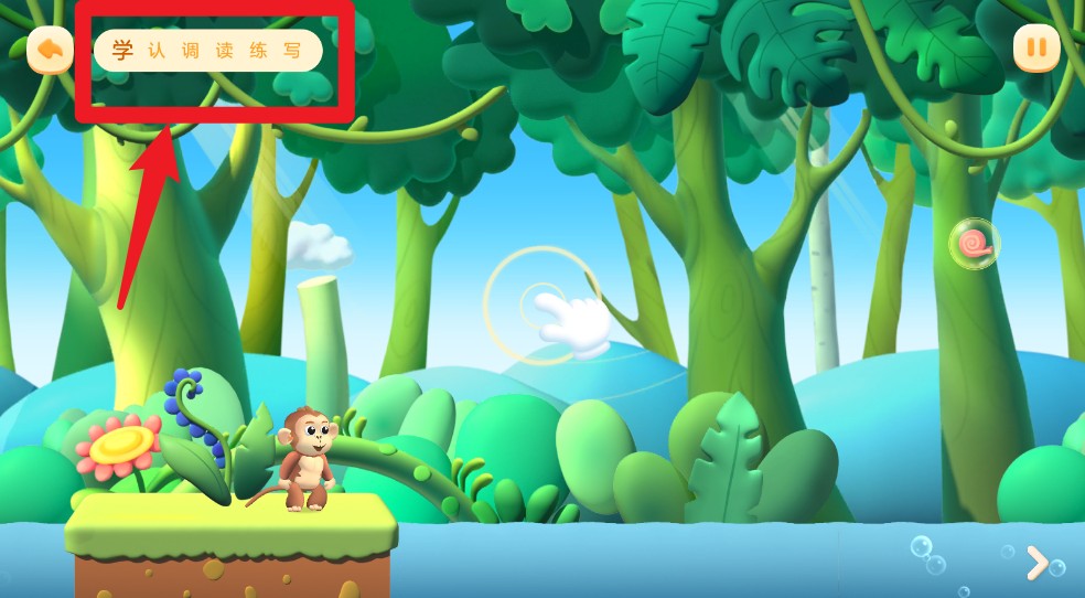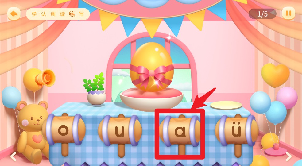 2、选定拼音练习关卡后,借助图案识别与发音匹配开展互动闯关,增强识记能力。