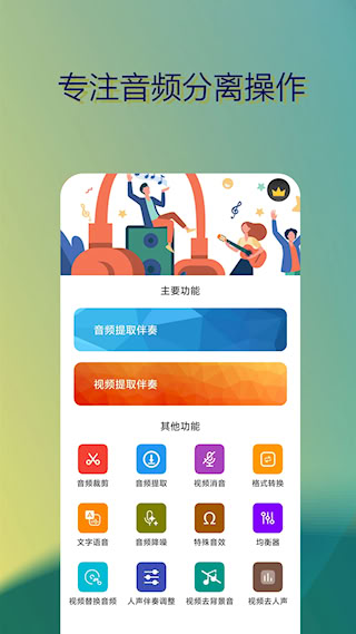 4、整合了伴奏提取、音频剪辑、视频处理、格式转换等十大功能,贯穿音视频处理的完整流程。无需在多款软件之间来回切换,有效提升创作效率。