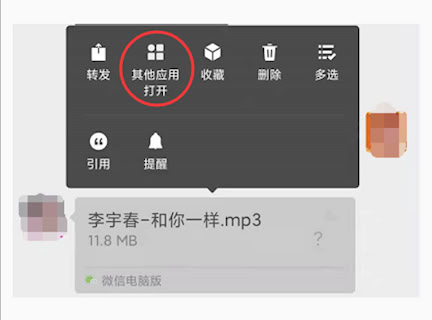 首先在微信或QQ里找到要接收的音频文件,点击打开播放后,选择右上角的按钮,或者长按音频来调出更多功能选项。
