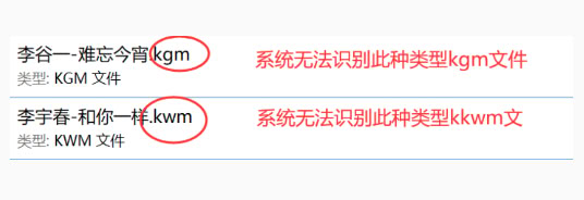 一:酷狗(kgm)、酷我(kwm)格式的音频无法找到或不被支持。