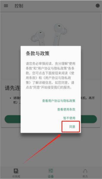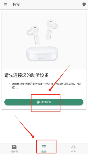 4、日常使用操作的具体步骤如下:戴上普通耳机后打开软件,就能实时启用助听功能,该功能支持多场景模式的切换。