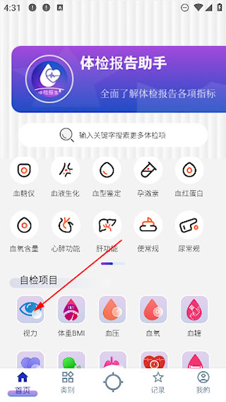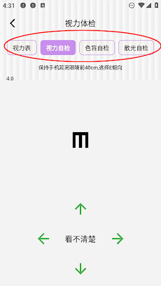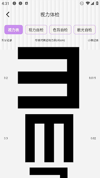 3、该板块也提供色觉检查、散光测试等多种视力评估项目及辅助功能。
