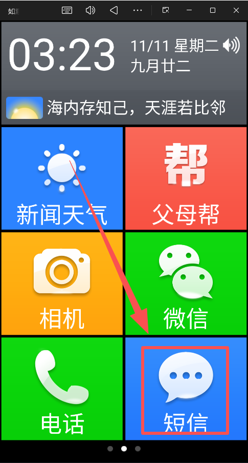 3、发送短信:点击短信图标即可进入大字体编辑界面,该界面支持语音转文字输入功能,同时还提供常用短语快捷发送选项。