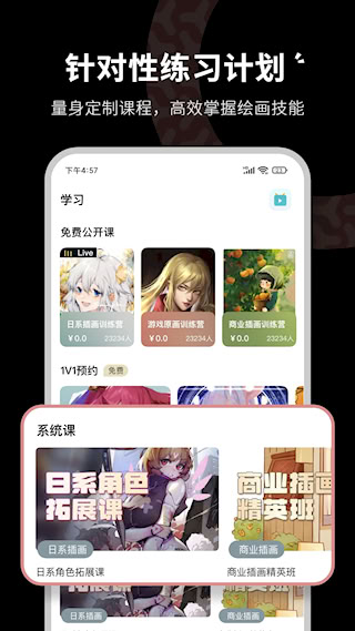 5、设立专项训练营并推出每日公开课,助力学员系统强化绘画技法,全面提升创作能力