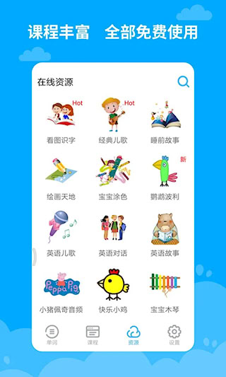 5、宝宝学英语平台汇聚了海量在线启蒙教育资源,所有阅读及学习资料均向用户免费开放。这些资源均由专业团队精心筛选,能够满足早期教育阶段的多样化需求。