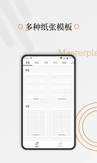 1、好多纸拥有内容丰富的电子纸张模板库,覆盖笔记、计划、练字、绘图等各类使用场景。这里的所有模板都模拟了真实纸张的样式,用户可以直接在模板上进行数字书写、标注或者编辑操作,并且模板始终保持A4的标准比例。