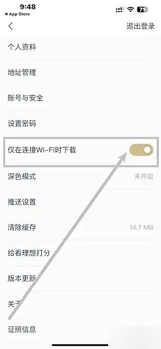 3、进入设置菜单后,找到“网络”选项,将【仅在Wi-Fi环境下】的切换按钮打开。