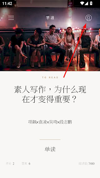1、启动单读应用,在主界面右上方找到个人中心图标并点击进入;
