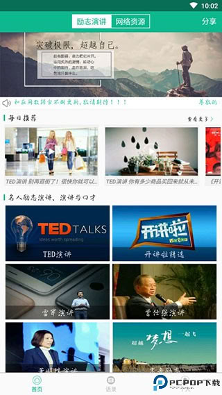 1、励志演讲整合了国内外各领域优秀人物的励志发言影像资料,访问者可以直观地体会到演讲者的现场感染力以及他们的奋斗故事,进而从中汲取前行的动力与启发。