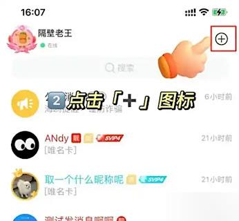 1、 启动程序进入主界面后,轻触界面右上角的“+”号图标。