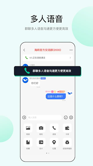 5、 支持群组内多人实时语音通话,最多可容纳数百人同时在线进行协同交流。