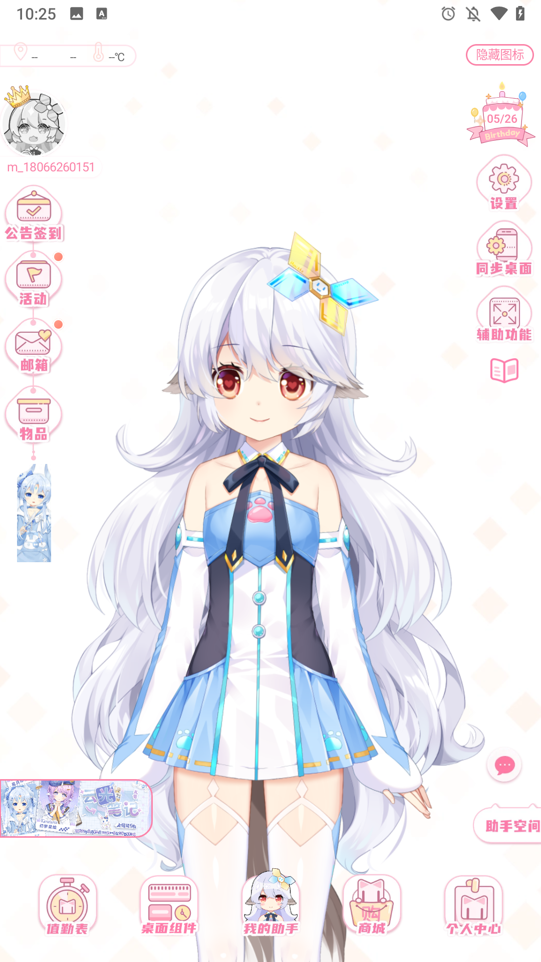 1、打造搭载虚拟助手的二次元风格桌面,将二次元元素与桌面功能结合。