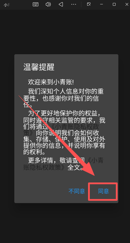 2、阅读并同意相关协议:初次使用时会弹出《隐私权政策》提示,仔细阅读完毕后点击“同意”按钮即可正式开始使用。