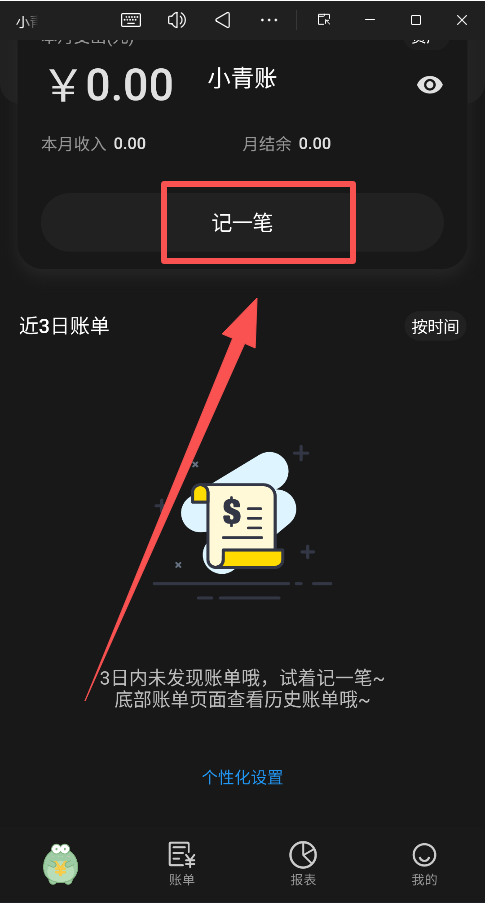 3、启动记账操作:点击首页的“记一笔”按钮,记录下您的首笔收支情况。