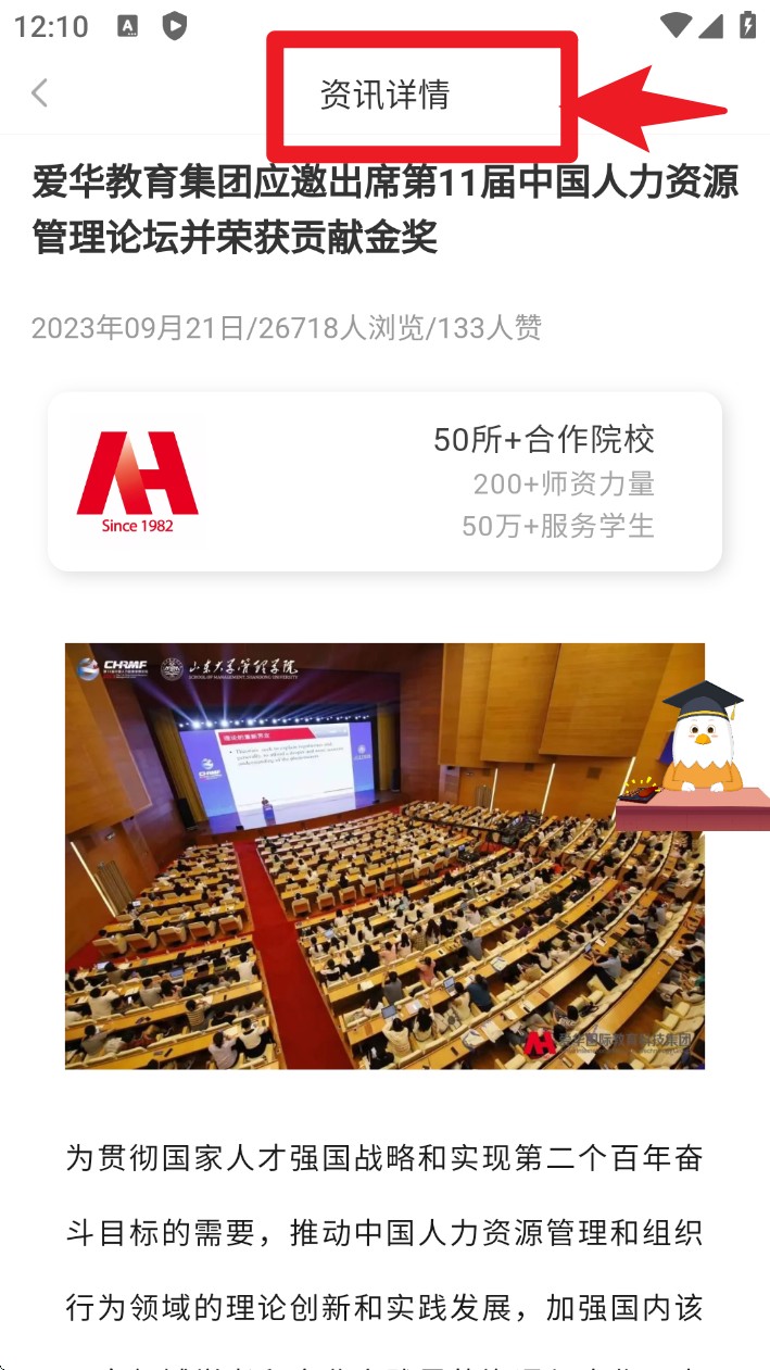 4. 首页中段展示名师公开课、头条资讯,点击资讯标题可查看完整内容与活动图文详情,支持点赞与浏览统计。