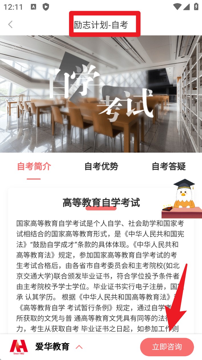 5. 在具体课程介绍页,可查看更多图文说明,点击底部立即咨询按钮可发起对话询问。