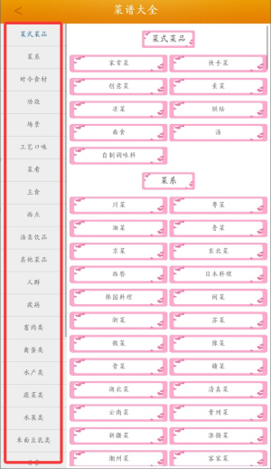 3、在分类列表中选择感兴趣的菜系类型,点击进入具体菜谱展示页面。