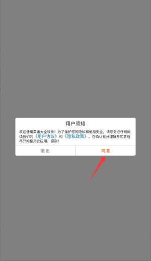 1、首次启动应用时,系统会显示用户协议和隐私政策,阅读后点击同意按钮进入主界面。