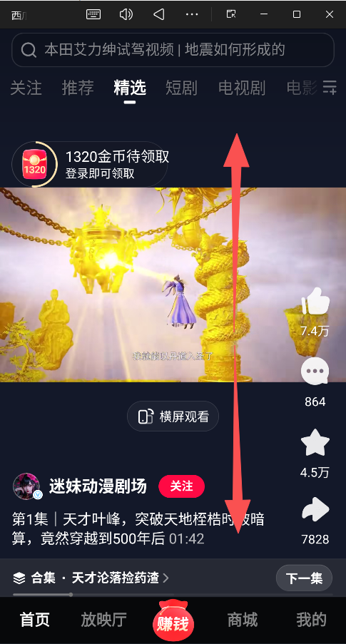 在 “首页” 上下滑动观看短视频。