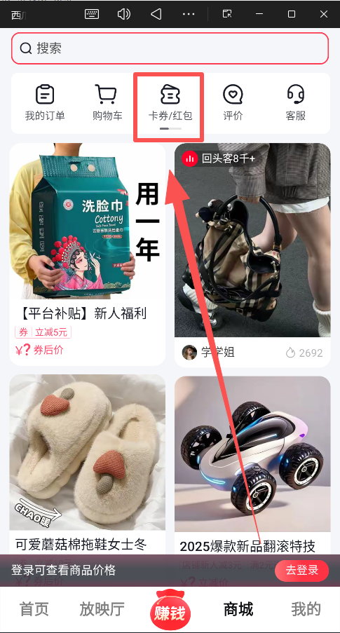 如果需要购物,可以进入 “商城” 选购,有时浏览商品本身也能赚取金币。