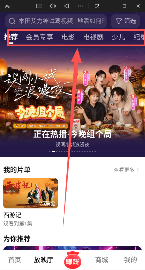 进入 “放映厅” 观看更长的影视剧。