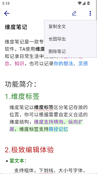维度笔记作为一款知识管理工具,具备多维度框架与智能标签体系,界面设计简约纯粹、无多余组件,全程打扰,能帮助用户聚焦于核心内容的记录;其多级分类功能与全文搜索特性可快速定位所需内容,有效减少检索耗时;云端同步机制确保资料在任何设备上都能即时访问;同时,支持多种记录格式和个性化配置,可灵活适配不同使用场景,为用户搭建个人认知体系提供有力支持。