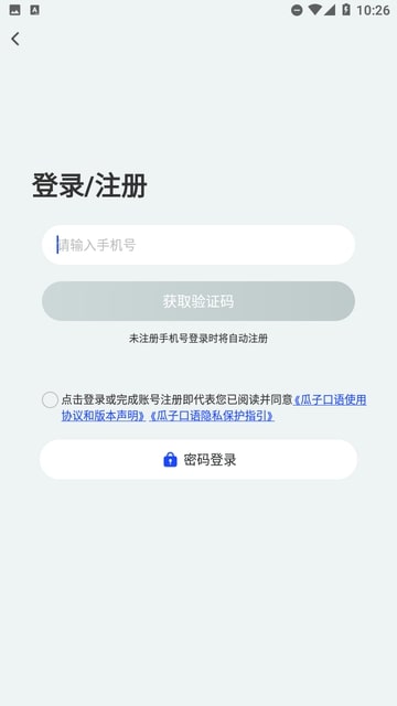 1、瓜子口语软件,依照提示完成安装步骤,注册账号后进入登录界面。