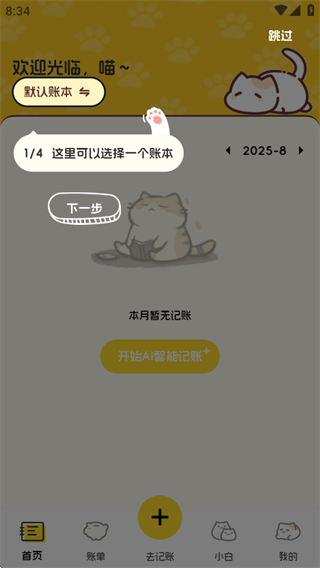 1、打开 后会出现系统指引,跟着指引能熟悉各项功能,点击下一步可继续,点击右上角跳过就能直接使用。