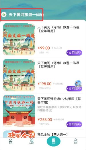天下黄河是一款专注于旅游年卡销售的购物软件,购买年卡后就可以通行众多签约景区,有效节省了现场排队购票的时间。为使用者提供各地景点的图文介绍、推荐服务,方便使用者规划行程。年卡定价合理,非常有性价比。内部设有特色商品专区,支持用年卡下单结算。假如你经常外出游玩,那就快来本站一个试试吧!