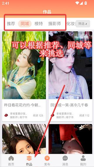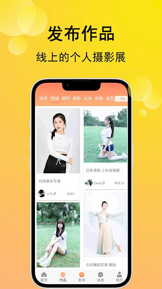 1、独创“需求-作品”双向智能匹配系统。在发布约拍动态时,系统会自动关联风格相近的作品集进行展示;浏览作品时也会推荐相关的开放邀约,极大提升精准连接概率。