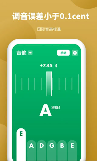 全能调音器整合了多种乐器的调音需求,拥有高灵敏度的音频分析算法,能快速捕捉乐器发出的声音,可识别吉他、贝斯、小提琴、管乐、乌克丽丽等数十种常见乐器的音高,并通过指针或光谱图提供直观的音高视觉反馈。它包含自动与手动两种操作模式:自动模式下,会智能判断当前弹奏的音名,引导用户调整至标准音高;手动模式则允许用户自主选择目标音名,进行更精细的校准。