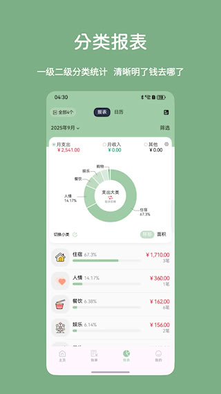 3、预设多层次分类体系,包含个性化图标库,满足不同场景记账需求