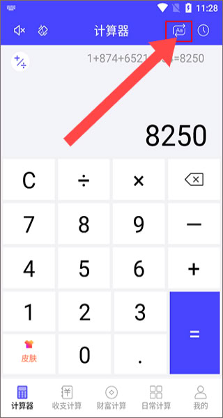 2、计算完成后,界面会清晰呈现运算结果,像数字8250这样的例子,点击右上方的功能图标,就能对当前的计算结果进行复制、存储或者分享之类的后续操作。