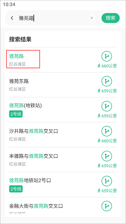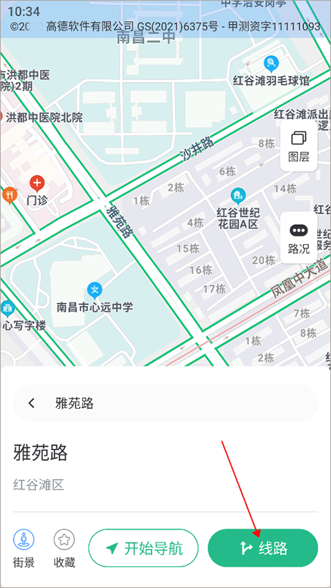 3、搜索结果页面加载完成后,选择 “线路” 选项进入规划界面。