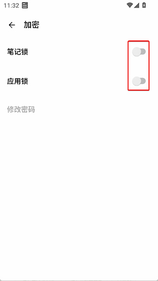 3、进入【加密】中开启笔记锁和应用锁
