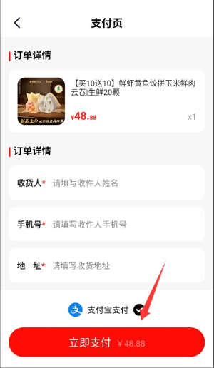 4、填写收货人信息、联系方式和配送地址后,点击支付按钮完成订单。