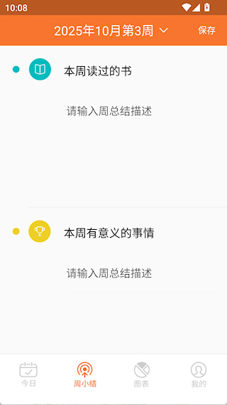 2、在【周总结】界面能自行记录本周读过的书和有意义的事情