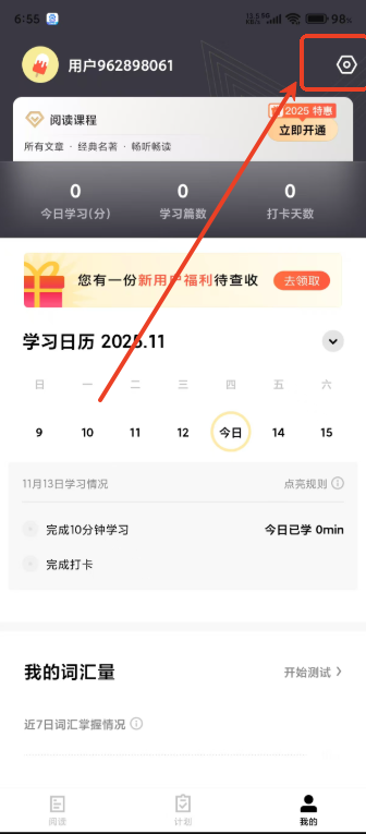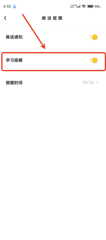 4.打开学习提醒。
