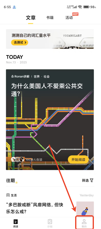 3、坚持每日推送精选文章,既能拓宽用户的阅读视野,又能让用户在阅读过程中自然接触到更多生词、短语和地道表达,从而积累更多实用英语知识。