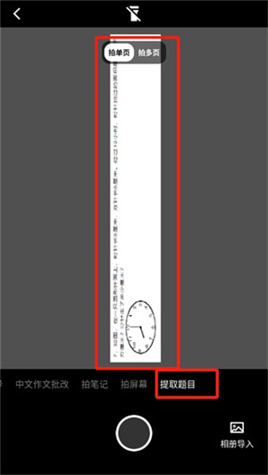 2、点击提取题目功能,把镜头对准要录入的题目拍照。